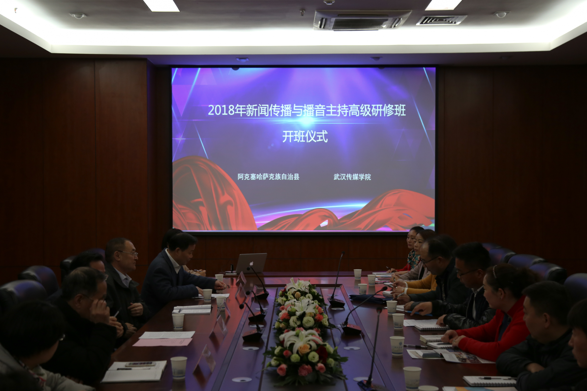 3月19日,武汉传媒学院“新闻传播与播音主持高级研修班”开班,来自甘肃阿克塞县文化传媒战线的10位工作人员来汉“求学”。培训时间从3月19日至6月19日,为期三个月。